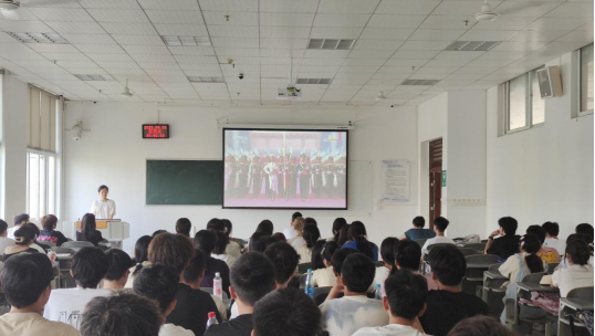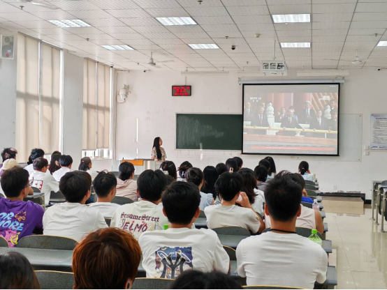 9点整,全体师生认真观看大会直播。直播过程中,习近平总书记的重要讲话,将士们铿锵有力的步伐、整齐划一的方队,以及一系列自主研发、技术先进的国防装备,都让师生们心潮澎湃,民族自豪感和爱国热情空前高涨。