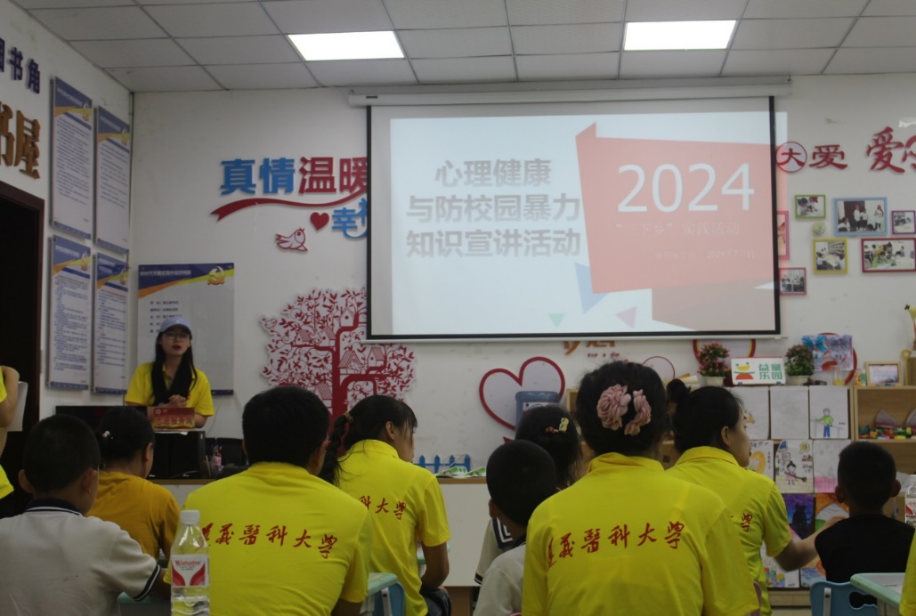 “五防”教育和急救知识科普 出征仪式结束后,队员们来到松源社区。暑期来临,对社区儿童进行“五防”教育和应急救护知识科普尤为重要。实践队员们结合专业所学,通过知识宣讲、案例分享、知识问答、组队练习等多种形式对社区儿童开展防溺水、交通安全教育、应急救护技能培训、防拐卖与诈骗、常见寄生虫疾病、防性侵等五防教育系列活动,在陪伴中引导孩子们形成初步的认知。