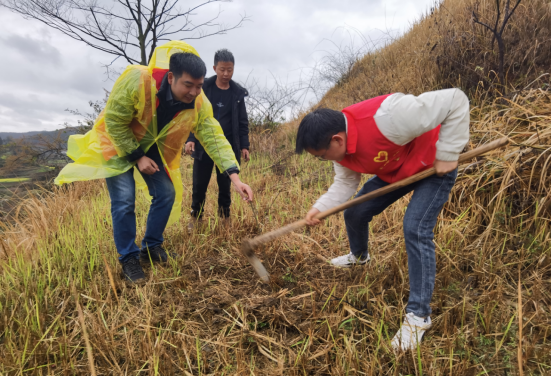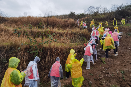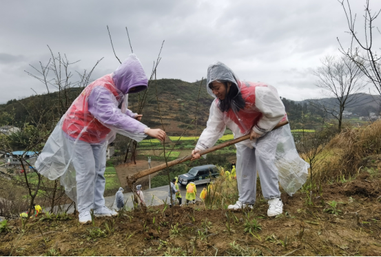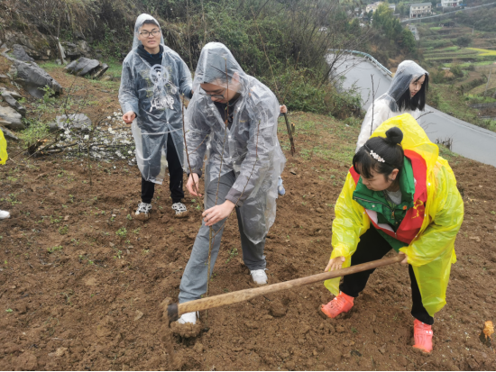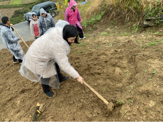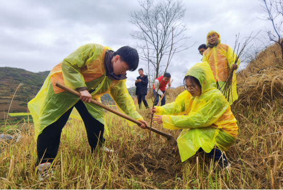 雨中植树忙,不负好时光。各公司领导、辅导员与员工代表50余人,前往遵义市湘江村开展义务植树造林活动,活动现场,新中街道办经发中心主任张绍东与湘江村党支部书记丁汉俊向师生简要介绍了乡村振兴相关政策与湘江村的基本情况,农业技术人员向大家详细讲解了蜂糖李树苗的种植方法与注意事项,在技术人员指导下,大家密切配合、通力合作,挥锹铲土、扶树正苗,培土围堰,淅淅沥沥的春雨,丝毫没有影响劳动的热情,经过一番辛勤劳作,师生与湘江村村民共种植了300棵李子树苗。“春天播种希望,四季收获快乐,此次活动中,让我切实感受到了劳动的意义所在,相信我们的生活环境会越来越多姿多彩,更加绿色生态!”来自临床医学专业的罗斗胜同学如是说。