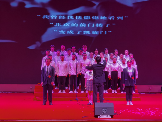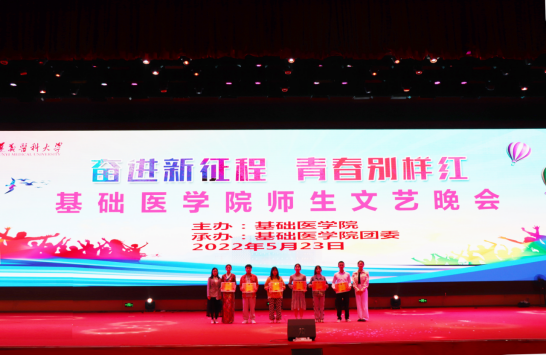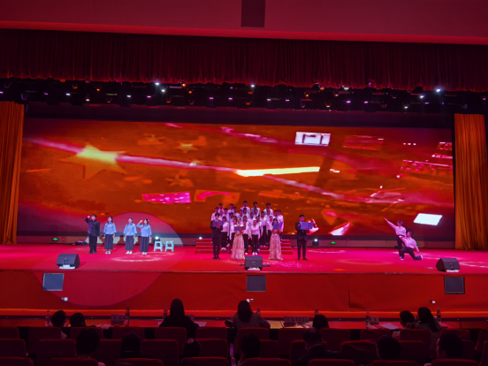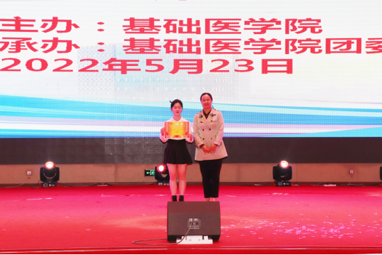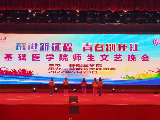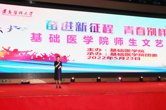“翻开遵医历史的画册,映入眼帘的是一幕幕理璀璨的瞬间,而这无不与我们党血肉相连……”,由公司教师带来的朗诵《礼赞遵医》拉开了晚会的序幕,整场晚会共15个节目,内容丰富,主题鲜明,师生同台,精彩纷呈,晚会综合运用音乐、舞蹈、朗诵、情景剧等表演形式:歌曲合唱《把你的可爱唱进我的青春》,共同追忆了波澜壮阔的革命岁月,讴歌了党的丰功伟绩与伟大成就;诗歌朗诵《以青春之我,传青春之火》,表达了青年学子勇担使命,在实现中华民族伟大复兴的中国梦中绽放青春的信心与决心;心理情景剧《破茧》,生动反映了只要收拾好心情,走出来心灵桎梏,便可破茧成蝶;舞蹈《Cheer up》,充分展示了当代老员工乐观积极、拼搏进取的精神风貌;歌曲《好运来》唱出了公司教师对伟大祖国更加繁荣昌盛的祝愿以及对青年学子成长成才的期许……师生精彩、生动的演绎将现场氛围一次次推上高潮,经过角逐,晚会评选出一二三等奖及优秀奖,现场领导与嘉宾为获奖同学颁奖,李菲副部长为本次比赛进行点评并给予了具体的建议,表演师生与观众受益匪浅。