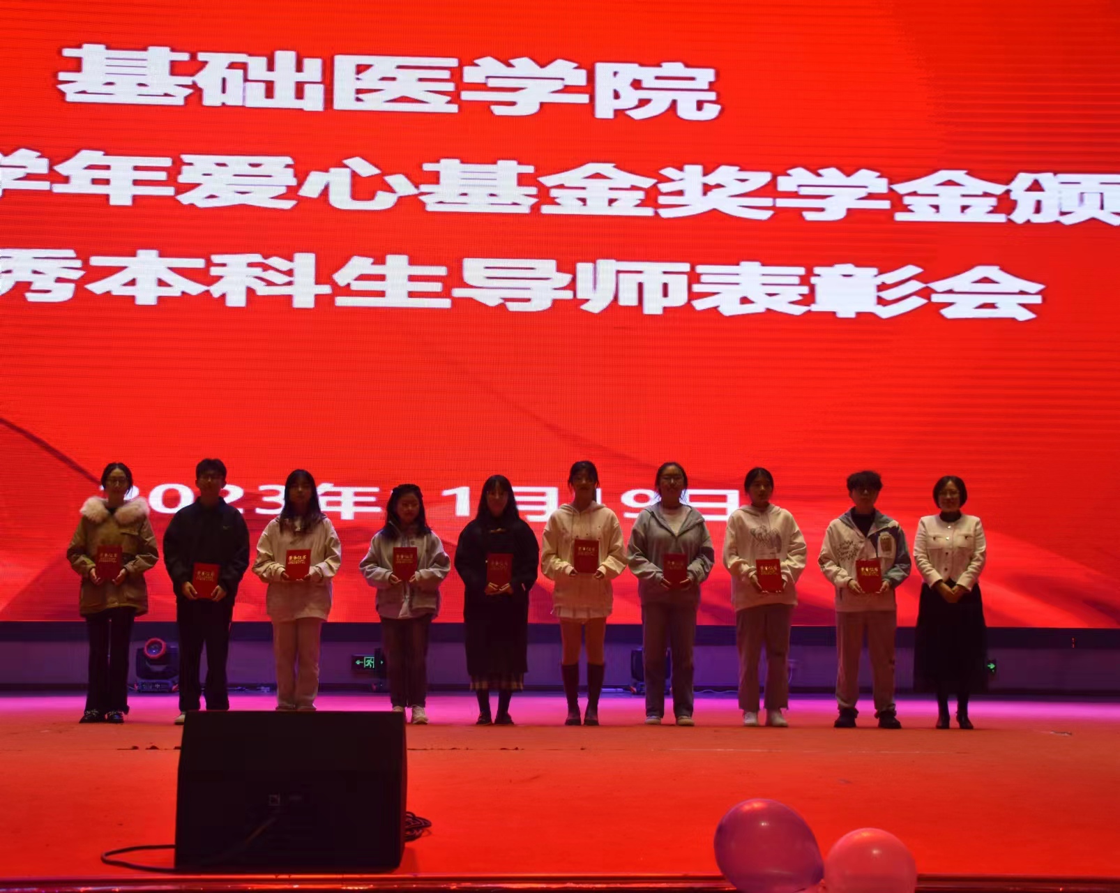 在2022-2023学年“爱心基金”奖学金颁奖仪式暨优秀本科生导师表彰会上,对获得一等奖的车晴娅、朱学睿、谢佳蓉、牟兰兰4名、二等奖的李怡玲等9名、三等奖的罗婷婷等9名、进步奖的刘晓燕、黄廷莉、李豪3名共计25名优秀员工和徐德林、张继东、高兴红、宋涛、肖毅5位本科专业优秀导师进行了表彰。公司关心下一代工作委员会钱民章教授对师生寄语时说到,医学的发展离不开基础医学研究,鼓励同学们要耐得住寂寞、沉得下心,公司设立“爱心基金”奖学金也是在不断鼓励同学们能够取得更多成绩,基础医学各位教师的辛勤付出也为同学们提供了积极支撑。