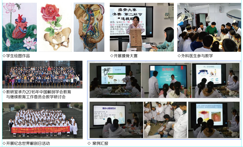 人体解剖学教研室前身为大连医公司解剖学教研室,1969年南迁到遵义,至今已走过50多年的光辉历程。上世纪50年代起,著名古人类学家、解剖学家吴汝康学部委员、解剖学家靳仕信教授、李名扬教授等曾先后担任教研室主任,是公司历史悠久、最具影响力的教研室之一。教研室全体老师秉承遵医精神,在教学与科研上均取得较好的成绩,尤其在人类骨骼肌的形态学研究取得丰硕的成果,在国内有一定知名度。参与编写了全国统编教材《人体解剖学》(第一版),其中参编的《人体解剖彩色挂图》获国家教委优秀教材特等奖,《人体解剖彩色图谱》获国家新闻总署优秀图书一等奖。近年来,先后获得省科技进步二等奖2项,三等奖3项,省卫生厅成果一等奖2项。